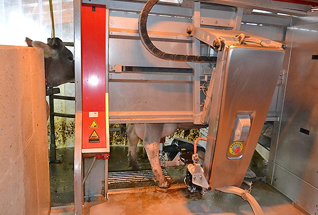 Roboterstall mit Lely-A4- Melkroboter mit freiem Tierverkehr