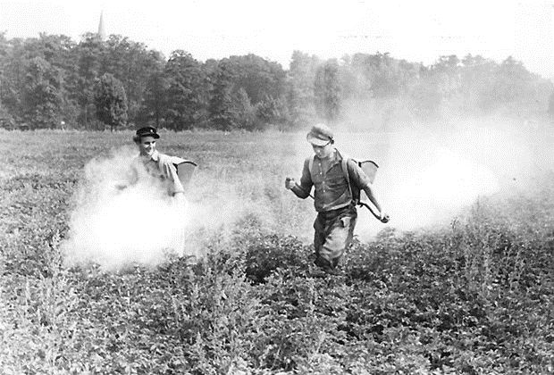 DDT (Dichlordiphenyltrichlorethan) wurde über Jahrzehnte verbreitet als Insektizid in der Landwirtschaft verwendet. Als seine schädliche Wirkung auf Tiere und Menschen klar wurde, folgte in den 1970er Jahren ein schrittweises Verbot. Die Substanz hat hormonähnliche Wirkungen und gilt als wahrscheinlich krebserregend. In der Schweiz ist die Anwendung seit 1971 verboten, die Herstellung seit 1986.