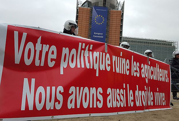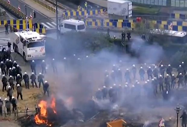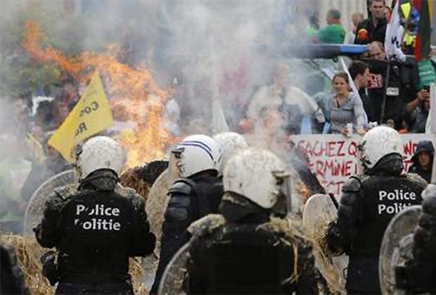 Sowohl beim EMB wie auch beim Copa-Cogeca kam es zu gewaltsamen Ausschreitungen. Die Bauern bewarfen die Polizisten unter anderem mit Kartoffeln, zündeten Rauchpetarden und schoben mit Traktoren brennende Autoreifen auf die Polizisten zu. Auch wurden die Polizisten mit Eiern beworfen. Teilweise gingen die Bauern mit ihren Traktoren auf die Absperrungen vor. Die Polizei drängte sie aber mit Wasserwerfern zurück. Gemäss der belgischen Zeitung «Le Soir» gab es Verletzte sowohl auf Seiten der Polizei wie auch der Landwirte.