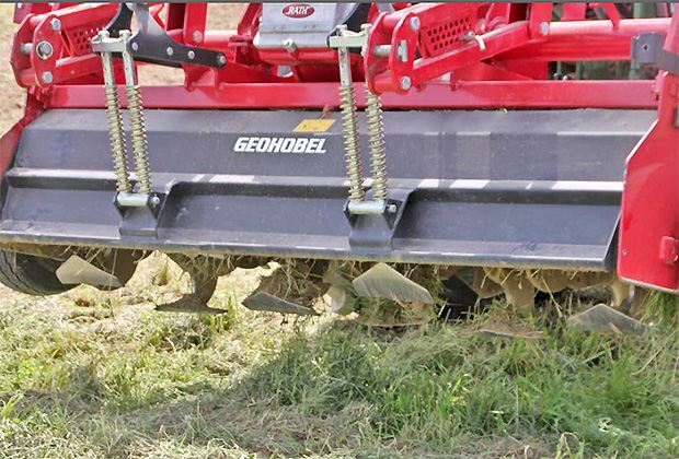 Gleich in einem Durchgang zeigte der angebaute Flachgrubber Horsch eine sehr gute Arbeit und lieferte ein ideales Saatbeet für die Folgekultur. Eine Neuheit ist der Geohobel Roth, welcher erst seit 2014 in der Schweiz im Einsatz ist. Für Bauer Ueli Zemp ist diese Technologie interessant, weil sie es erlaubt, beispielsweise Gründüngungen problemlos einzuarbeiten. Dabei kommen Hobelmesser zum Einsatz, welche eine gradlinige vollflächige Bearbeitung erzeugen.