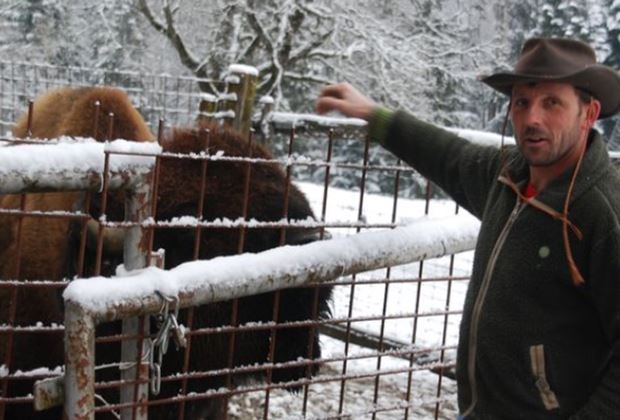 „Ich gehe nie zu den Tieren rein und wenn es sein muss, lasse ich höchste Vorsicht walten“, sagt der Landwirt, der sich das landwirtschaftliche Wissen nach seinen beiden hölzigen Ausbildungen erst erarbeiten musste. „Das Risiko ist sehr hoch, Bisons sind Wildtiere, die sich nicht zähmen lassen.“ Auch wenn sie ihn kennen und ihm nachlaufen geben die Tiere den Tarif durch und der Bulle sei ganz klar der Chef.