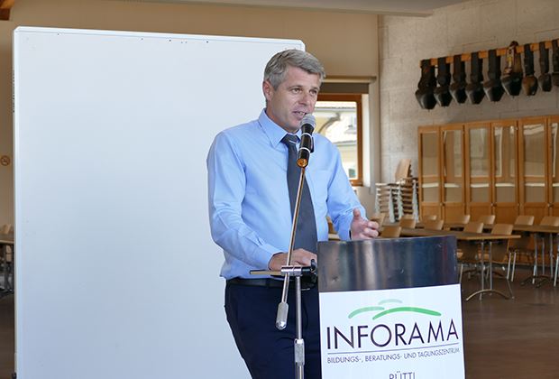 Mehr als 300 Interessierte lauschten der Eröffnungsrede des Volkswirtschaftsdirektors Christoph Amman, der direkt von der Session auf die Rütti kam, und damit das Interesse und die Unterstützung des Kantons Bern an der Reduktion von Pflanzenschutzmitteln unterstrich. „Wir müssen die Herausforderungen der Zukunft gemeinsam angehen“, so der Regierungsrat. Ammann will nicht, dass die aktuellen Volksinitiativen angenommen werden. Diese sind für ihn nicht zielführend.