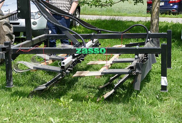 Nebst dem kleinen Oz-Roboter von Naïo-Technologies, der für die Unkrautregulierung zwischen zwei Reihen von mindestens 65 cm Abstand eingesetzt werden kann, wurde in Zollikofen ein ganz neuer, grösserer Roboter vorgeführt, der Naïo dino. Entwickelt für den Gemüsebau, wurde er mit zwei einfachen Hackelementen an der Feldtagung in einer Maiskultur gezeigt. Er ist 800 kg schwer und arbeitet mit Akkus während bis zu 10 Stunden autonom, gesteuert über GPS mit bei der Saat aufgezeichneten Daten.