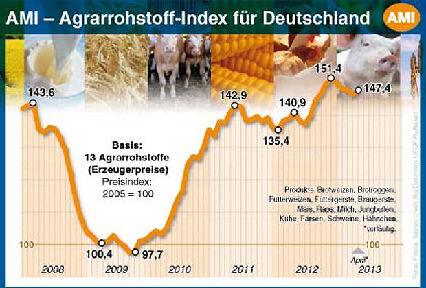 Vor allem höhere Preise für Rohmilch, Braugerste und Körnermais haben den Index beflügelt, teilt die Agrarmarkt Informations-Gesellschaft (AMI) am Freitag in einem Communiqué mit. Der AMI-Index hält sich somit auf vergleichsweise hohem Niveau. Das wichtigste Preisbarometer der deutschen Agrarwirtschaft liegt nun gegenüber dem Vorjahr um 6,5 Punkte oder knapp 5 % im Plus.