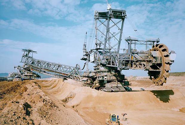 Rang 1: MAN & Takraf RB293 (14'200 Tonnen Einsatzgewicht, 96 Meter Höhe). Der RB293 ist so schwer wie 25 Passagierflugzeuge und so hoch wie ein Wolkenkratzer. Die grösste Maschine der Welt hat 6745 PS und eine Höchstgeschwindigkeit von zehn Metern pro Minute. Er wird von der RWE Power AG zur Braunkohleförderung eingesetzt.