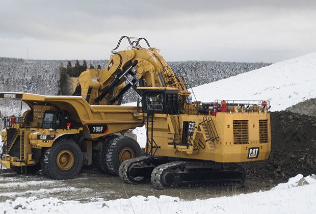 Rang 3: Caterpillar 7495 HF (1435 Tonnen, 20,9 Meter). Der dritte Platz geht an den fast 21 Meter grossen Caterpillar 7495 HF. Der elektrische Seilbagger bringt stolze 1435 Tonnen Einsatzgewicht auf die Waage. Das Ungetüm hat eine Höchstleistung von 5317 Pferdestärken. In nur einer Schaufel stemmt der Bagger über 100 Tonnen Gewicht.