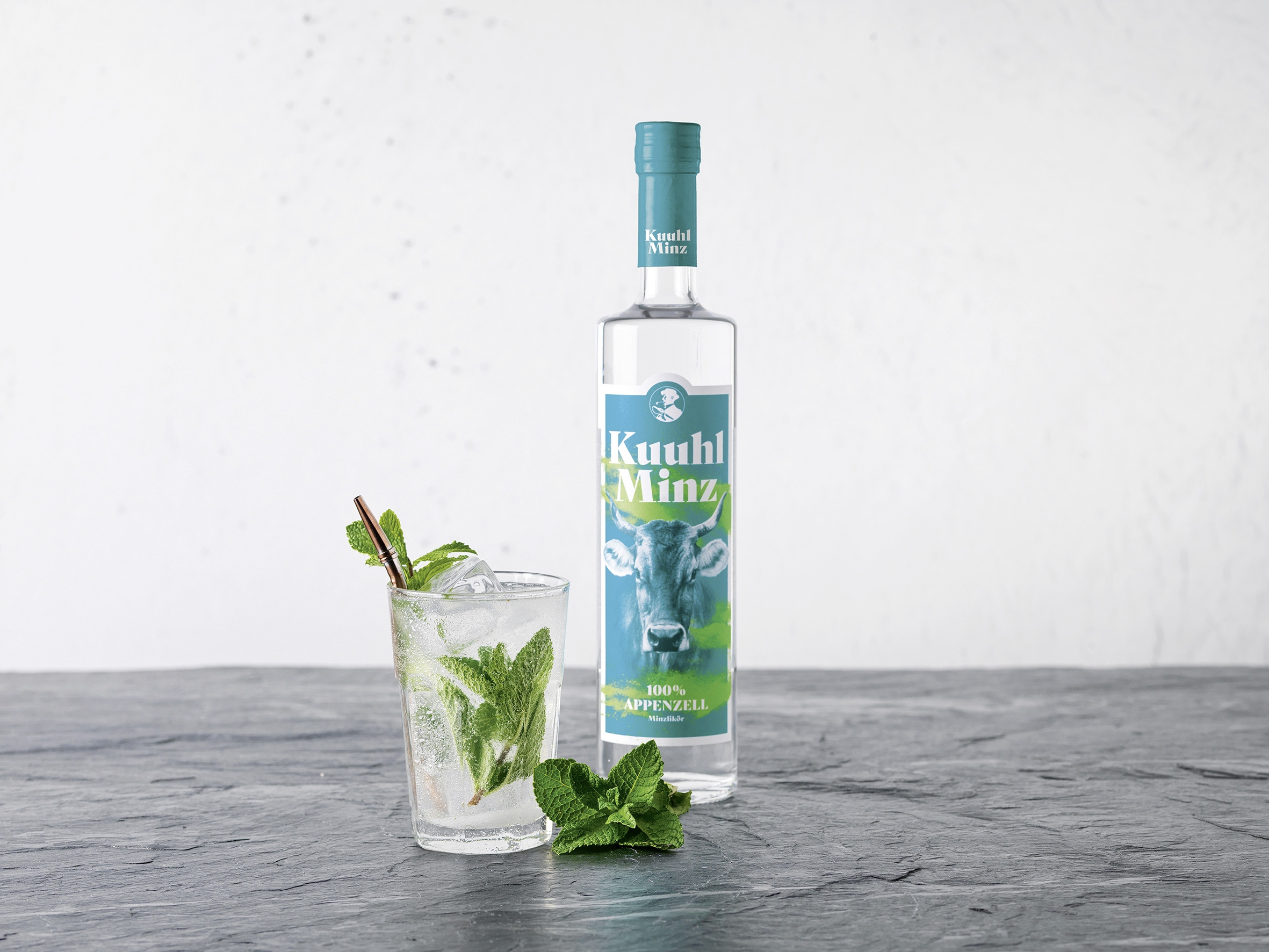 «Wo Appenzell draufsteht, ist Appenzell drin», lässt die Firma in einer Medienmitteilung verlauten. Dieses Versprechen löst die Appenzeller Alpenbitter auch mit ihrem neusten Getränk ein. Kuhl Minz ist ein Minzlikör. Als Zutat werden ausgewählte Pfefferminzblätter aus der Region verwendet.