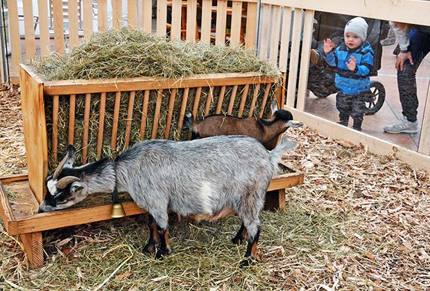 Die bodennahen Glasscheiben lassen auch die Kleinsten einen Blick auf die Zicklein erhaschen.