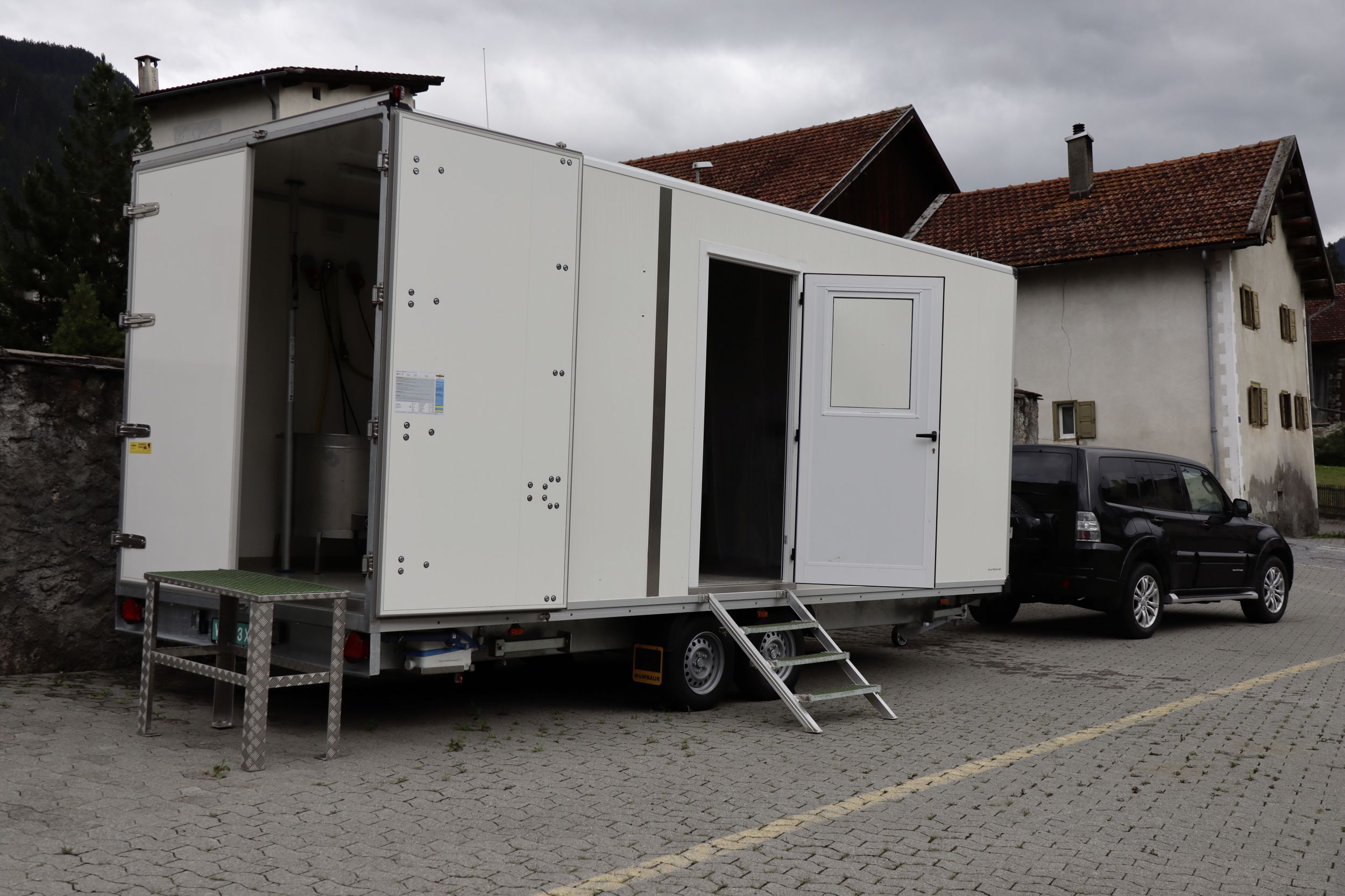 Doch: Wie viel Bürokratie bewältigt werden musste, bis sie endlich die Bewilligung für das Pilotprojekt bekommen würden, ahnten sie noch nicht. Dank den Investoren konnte ein passendes Zugfahrzeug angeschafft werden, Matthias Mayr baute den sechs Meter langen Anhänger mit der mobilen Schlachterei, der Schleuse und einem hygienischen Bereich, wo das Geflügel ausgeweidet wird, und mit einem Kühlraum. «Es mussten noch einige Anpassungen gemacht werden, damit der Anhänger auch wirklich von der Motorfahrzeugkontrolle abgenommen werden konnte», so Leppkes.