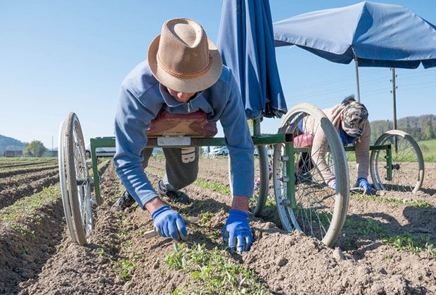 Die Arbeit auf den Jät-Ferraris ist streng und trotz Polster auch nicht immer angenehm. Camenzind erinnert sich hier beispielsweise nur ungern an ein zu jätendes Feld mit Brennnesseln für die Biodüngerproduktion zurück. Doch seine Leute seien schliesslich froh, diese geregelte Arbeit zu haben.