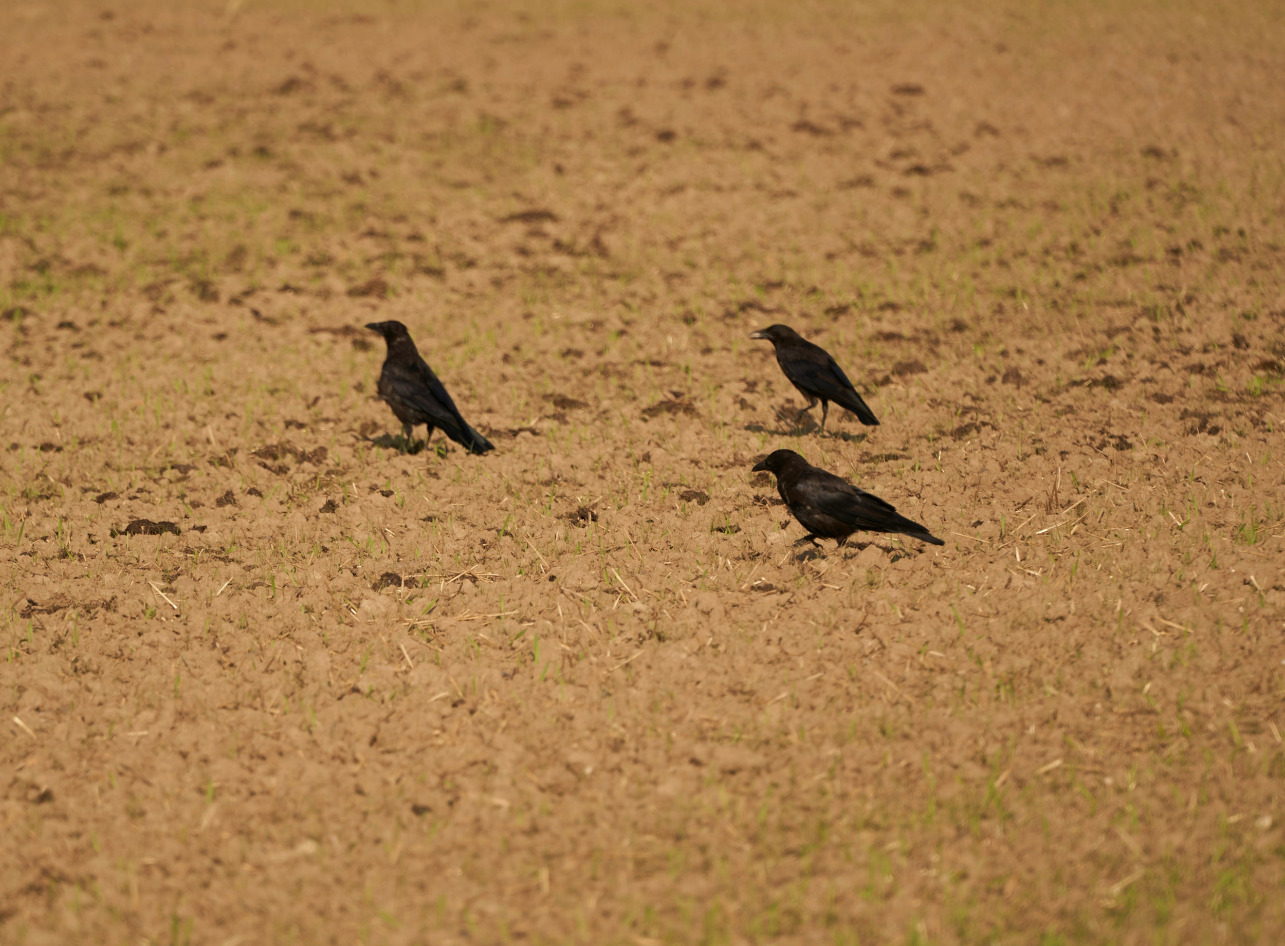 Raben und Saatkrähen picken Samen und junge Pflanzen an, was zu Ernteausfällen führen kann.