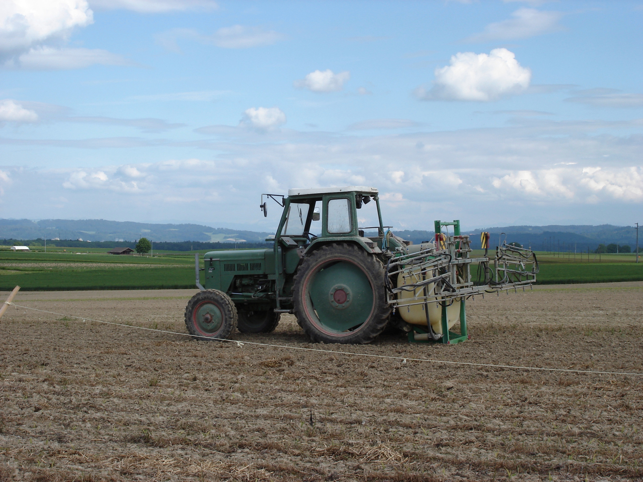 Landwirtschaftliche Geräte – wir hier eine Feldspritze – können Rabenvögel fernhalten.