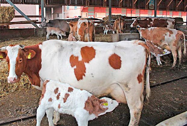 In der Regel sind Kühe und Kälber während der ersten ein bis zwei Tage nach der Geburt rund um die Uhr zusammen, dann werden sie in abgetrennten, aber benachbarten Schlägen gehalten und nur zur Fütterungszeit zusammengelassen. Im grosszügig konzipierten Freilaufstall verfügen Kühe wie Kälber über viel Platz.