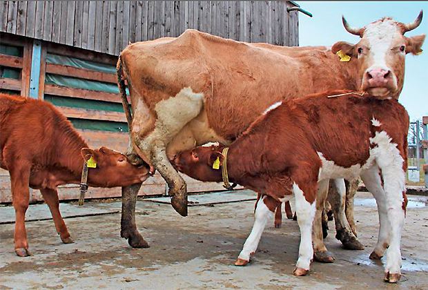 Zweimal täglich spielt sich dieses Prozedere ab und wird im Kälberleben so weitergehen, allerdings mit wechselnden Milchspenderinnen. Wer sich zur Amme eignet und es gut mit Kälbern kann, bekommt nach zwei, drei Monaten zum eigenen noch ein fremdes Kalb dazu. Die übrigen Fleckviehkühe kehren wieder in die Herde zurück und werden nur noch gemolken. Ältere Kälber, die Milch nur als Ergänzung zum Raufutter erhalten, teilen sich zu dritt eine Amme, die nicht zusätzlich gemolken wird.