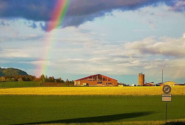 Aus Wittenwil SG hat uns Daniela Kägi mit einer genialen Teilnahme am Wettbewerb beehrt. Sie hat einen Regenbogen vor einem Rapsfeld abgelichtet. Christof Bärtschi aus Rüderswil BE hat ein Abendstimmungs-Rapsbild mit den klingenden Worten «wenn die Natur einen goldenen Moment schenkt» eingereicht. Tausend Dank an alle Wettbewerbsteilnehmer in dieser Woche.