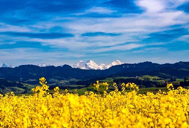 Die Entscheidung fiel letztendlich auf ein in Zimmerwald BE geknipstes Foto. Es zeigt blühenden Raps vor den Oberländer Bergen Blüemlisalp, Niesen und der Stockhornkette. Als Siegerin darf sich Margrit Tschirren aus Zimmerwald BE feiern lassen, herzlichen Glückwunsch! (Das Siegerbild befindet sich in der ersten Bildergalerie.)