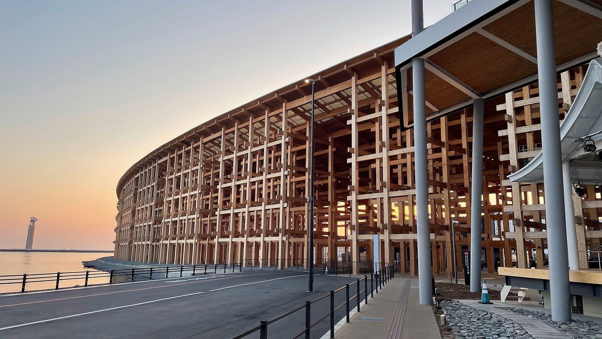 Rund um die Länderpavillons zieht sich ein 20 Meter hoher «Ring» aus Holz, auf dem man das Gelände in gut zwei Kilometern zu Fuss umrunden kann – die grösste Holzkonstruktion der Welt, mit alten Techniken unter Mithilfe neuer Technologien erbaut. Ausserhalb des Rings stehen die Eventhalle, Themenpavillons und der riesige Souvenirshop. Die Schlange davor ist geschätzt drei Stunden lang, der Europäer wird sein Erinnerungsstück wohl eher online bestellen.