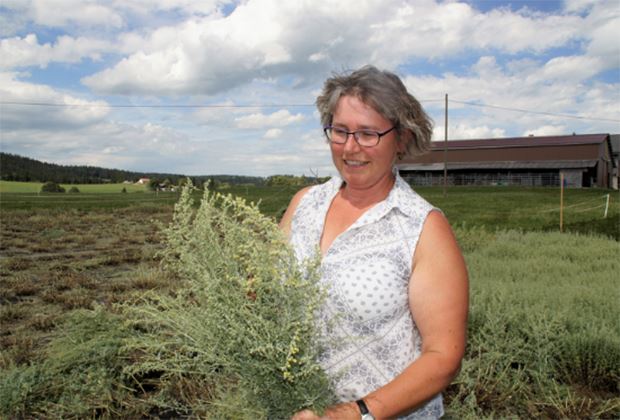 Marlise Baur produziert seit 10 Jahren Wermut für die Absinth-Brennereien im Val-de-Travers. Zusammen mit ihrem Mann erntet sie dreiviertel des gesamten Wermuts der Region.