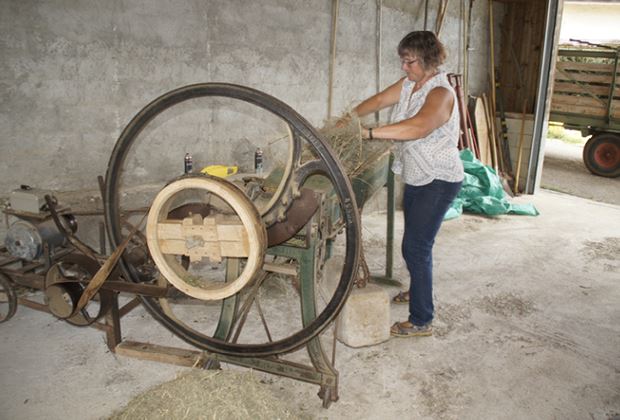 Die Häckselanlage mutet rustikal an. Doch für die 600-800 Kilogramm Wermut pro Jahr reicht es völlig. Besonders während des Häckselns breitet sich ein bitterer Geschmack in der Luft aus, der auf den Lippen hängen bleibt. Doch Absinth beziehungsweise Wermut sei gut für den Magen und die Verdauung, weiss Marlise Baur.