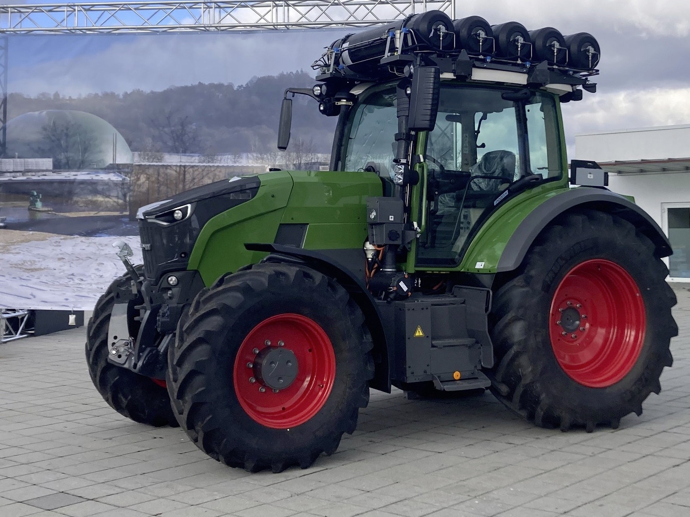 Wesentlich besser sieht das Verhältnis beim tiefkalten, flüssigen LNG (Liquefied Natural Gas) aus, weshalb dieses schon seit Jahren im LKW-Fernverkehr eingesetzt wird. Bei Traktoren war LNG bisher kaum ein Thema, weil sich die üblichen zylinderförmigen, vakuum-isolierten Tanks schlecht in den knappen Bauraum integrieren lassen und weil aufgrund von längeren Standzeiten grössere Mengen an Boil-off-Gas (Abdampfverluste) entstehen können.