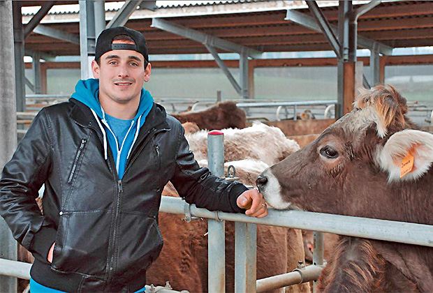 Der 27-jährige Dominic Haab ist ausgebildeter Landwirt, verheiratet und Vater zweier Töchter. Zwischen den Winterkursen der landwirtschaftlichen Schule arbeitete er auf einem Milchproduktionsbetrieb in Iowa (USA). Nachdem er auf dem Bau arbeitete, absolvierte er die Techniker- und Handelsschule am Strickhof. Heute führt er in Mettmenstetten ZH den 40 ha grossen Milchwirtschaftsbetrieb seines Vaters. Mit 75 Brown-Swiss-Milchkühen und 75 Stück Jungvieh produziert er 0,5 Mio. kg Milch für die Zentralschweizer Milchproduzenten. Neben ihm arbeiten noch sein Vater zu 60 Prozent sowie sein Grossvater als Aushilfe auf dem Betrieb. rab