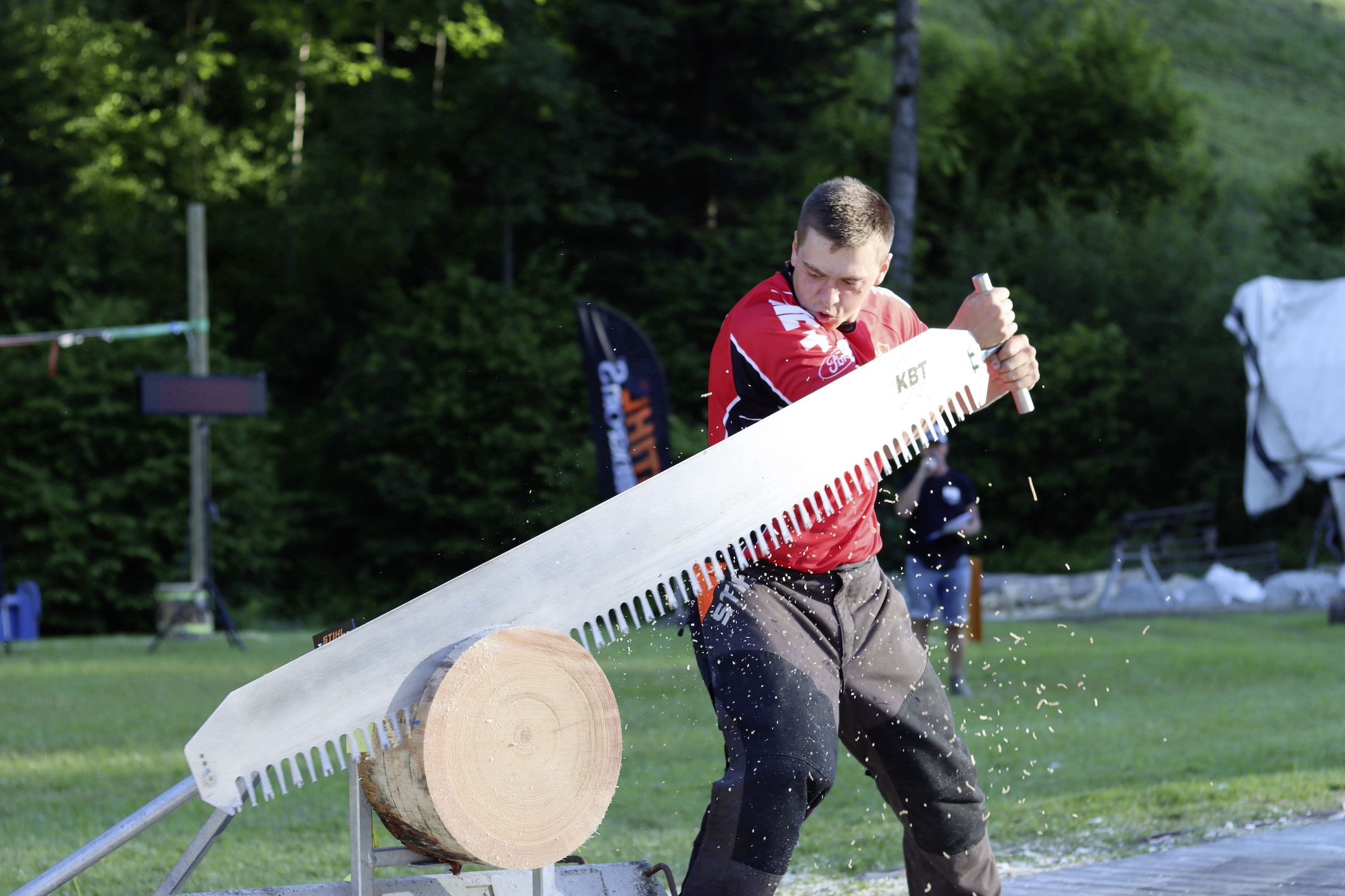 Der zehnfache Schweizermeister Christophe Geissler (48) aus Aigle (VD) glänzte mit Bestform und stellte sogar noch einen nationalen Rekord an der Single Buck auf, der speziell für den Wettkampf angefertigten Einmann-Handzugsäge. Zweiter wurde Pirmin Gnädinger (33) aus Ramsen (SH). Die beiden lösten damit ihr Ticket zum European Nations Cup, ein internationaler Wettkampf der am 11. September in Weiach im Zürcher Unterland im Zuge der 750-Jahr-Feier des Ortes stattfindet.