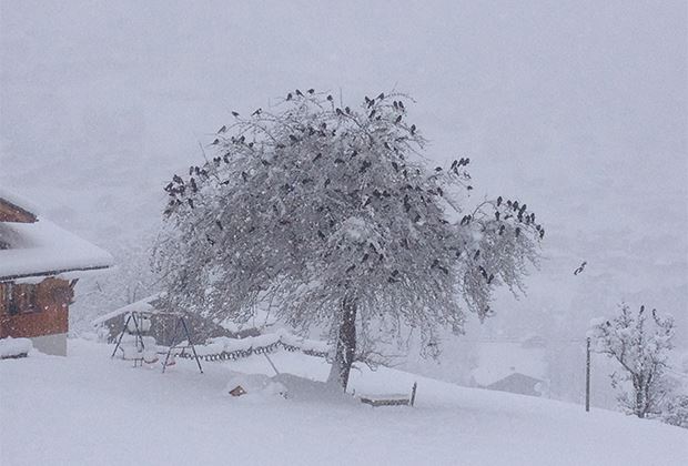 René Weibel aus Wittenbach, ebenfalls SG, hat uns mit Fotos von seinem selbst gebauten, stilvollen «Chalet Linda» beehrt. Auch Werner Grünig aus Rüschegg-Heubach BE ist begabt und hat selber ein wunderschönes Vogelhäuschen gebaut. Im tief verschneiten Grindelwald BE bei Beat Aeschlimann gibt es nicht «nur» ein Vogelhaus, sondern gleich einen ganzen Vogelbaum.