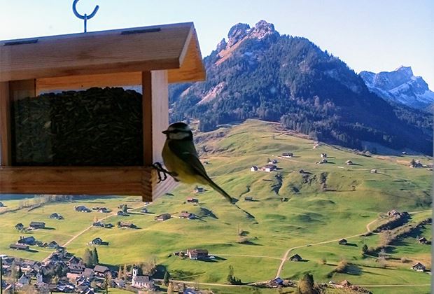 Jedoch nur, wenn wir den Vögeln qualitativ einwandfreies Futter im richtigen Mass anbieten. Dieses muss in einem vor Nässe geschützen Reservebehälter nachsickern. Hierzu erfährt man auf der Website der Vogelwarte Sempach viele dienliche Tipps. Zum Siegerbild wurde die Einsendung von Agnes Holenstein aus Stein SG ernannt. Ihrem Bild fügte sie an: «Ein Gruss aus dem Obertoggenburg von 1000 m ü.M.» Abgelichtet hat sie eine Blaumeise, die sich an der hängenden Futterstelle verköstigt. Gemäss Vogelwarte erfüllt das Vogelhaus von Agnes Holenstein die Kriterien eines guten Vogelhauses. Hier gibts mehr Infos