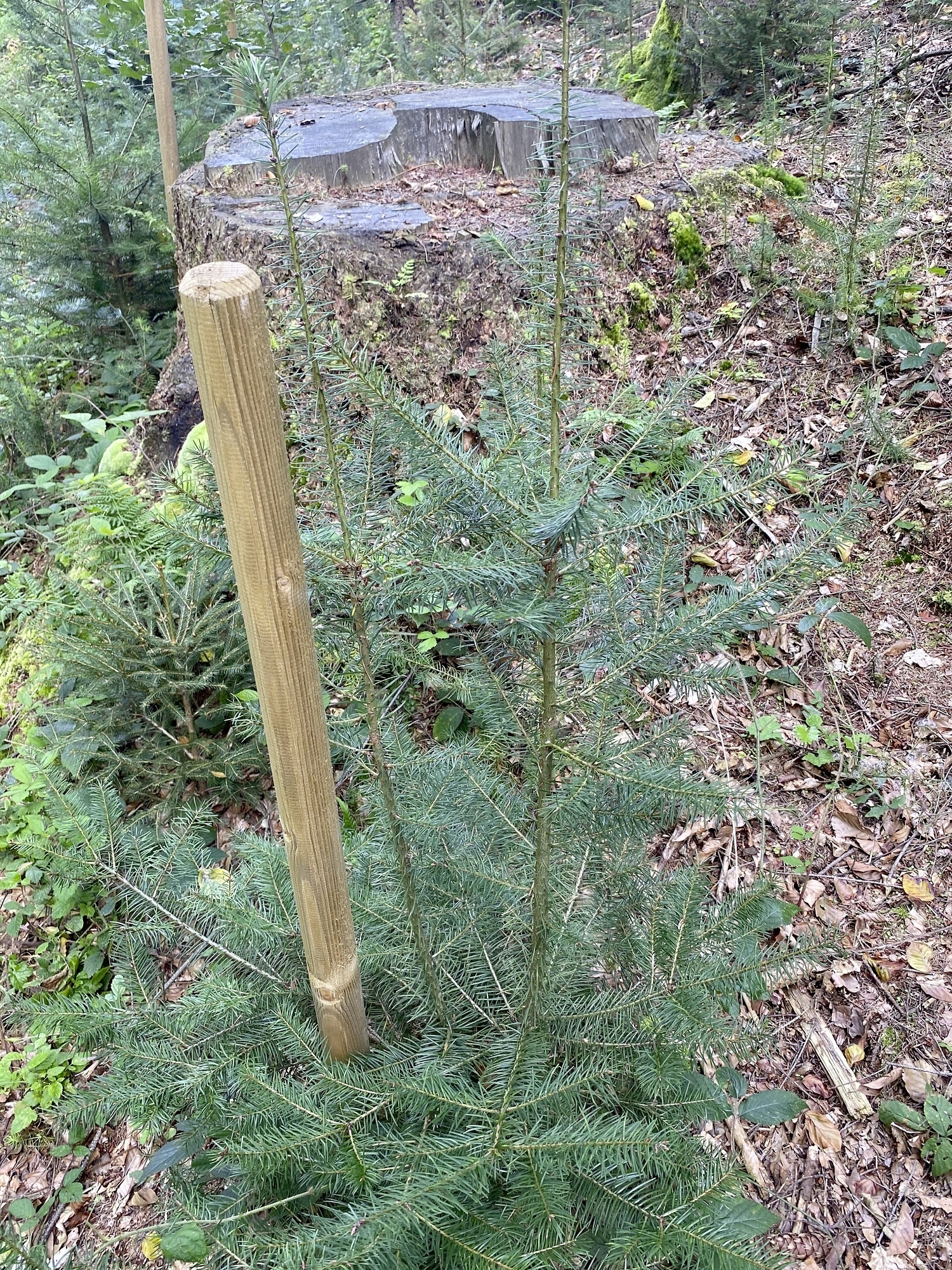 Am besten ist Mischwald. Wir Pflanzen: Douglasien, Lärchen europ. und japanisch, Eichen, Schwarzföhre, Küstentanne; Spitzahorn, Kirschen, Schwarznuss, Walnuss, Edelkastanien.