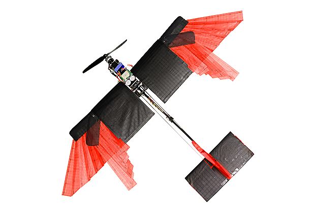 Auch die Drohne hat künstliche Federn, die sich falten lassen und überlappen wie bei einem Fächer. Diese beweglichen Teile können sich ein- oder beidseitig zusammenziehen oder ausstrecken. So können die Forscher die Geometrie der Drohne mitten im Flug so verändern, dass sie scharfe Kurven, zwischen Hindernissen hindurch und auch bei starkem Wind stabil fliegen kann.