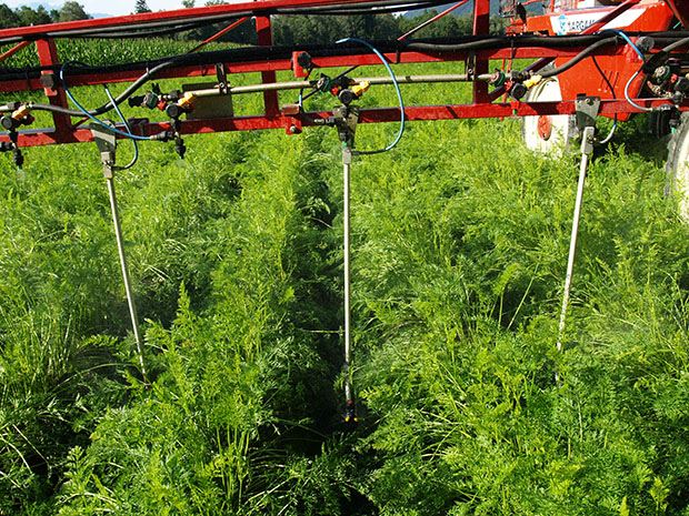 Die Unterblattspritzung wird auch Droplegtechnik genannt. Sie hilft mit, die Pflanzenschutzwirkung weiter zu verbessern und die Menge an Pflanzenschutzmitteln zu verringern.