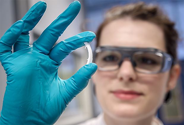 „Die grösste Herausforderung, wenn man einen porösen Verbund aus PLA und Harnstoff herstellen möchte, ist, das Biopolymer zu verarbeiten, ohne den Harnstoff dabei thermisch zu zersetzen“, schildert Diana Keddi. Harnstoff schmilzt bei etwa 130 Grad Celsius, Polymilchsäure hingegen bei Normaldruck erst bei 140 bis 170 Grad Celsius, je nach Typ. Erhöht sich jedoch der Gasdruck, verringert sich die Schmelztemperatur.