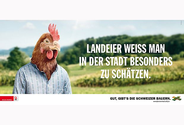 Die Edelweiss-Kampagne mit den Hoftieren geht in eine weitere Runde: Seit Montag werben wieder „Edelweisstiere“ für die Leistungen der Schweizer Bauern. In der neusten Auflage stehen ein Huhn („Landeier weiss man in der Stadt besonders zu schätzen.“) und ein Schaf („Davon träumt jede Frau: Täglich frische Blumen.“) im Mittelpunkt. Auf den Plakaten im Winter 2016 waren das Schaf mit einer Winterbotschaft, ein Schwein und eine Jungkatze die Stars.