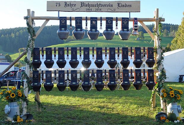 Auf dem Platz selber geht es sicherlich um die Punkte der Tiere, ausserhalb des Sägemehlrings um Geselligkeit. Nicht nur die Tiere erscheinen an der Herbstschau herausgeputzt, auch die Viehschauplätze und die Bauern kommen flott daher.