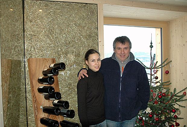 Selbst wenn die acht vorgefertigten Räume äusserlich praktisch identisch sind, unterscheiden sie sich in der Innenausstattung. «Wir haben für jedes Zimmer mit acht verschiedenen Hölzern aus dem Zentralwallis Betten machen lassen», betont Papadopoulos. So wirken manche rustikal, andere dagegen schlicht oder modern. Selbst die Stühle im Restaurant wurden aus alten Rotweinfässern hergestellt. Auch im Restaurant setzen die beiden auf traditionelle Walliser Rezepte und einheimische Produkte. Letztlich trug die Nähe zu einer noch «funktionierenden Landwirtschaft» auch dazu bei, dass sie sich für ihr eigenes neues Zuhause und das Strohhotel das Dorf Nax oberhalb Sion ausgesucht haben. «Das Stroh schafft ein angenehmes Raumklima und isoliert sehr gut», freut sich Papadopoulos. Daher werden für 1Kubikmeter auch nur 12Kilowatt Energie verbraucht – noch deutlich weniger als für ein Haus nach Minergiestandard P.