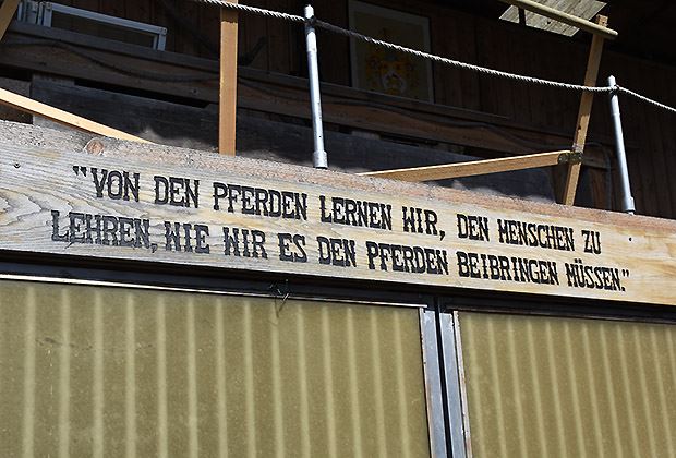 Man sollte immer gelassen und gutgelaunt zu seinem Pferd gehen. Ich verhätschele meine Pferde keinesfalls im Umgang, der Mensch muss immer seine Autorität behalten, sonst wird es gefährlich. Aber Autorität hat nichts mit Gewalt und Kraftanwendung zu tun. Das Pferd akzeptiert nur einen souveränen, authentischen Menschen als Alphatier. Deshalb ist mein Motto: So lieb wie möglich, so streng wie nötig und immer absolut konsequent. Es ist möglich eine echte und vertraute Mensch-Pferde-Beziehung aufzubauen, aber die meisten Menschen bringen es nicht fertig eine solche Beziehung hinzubekommen.