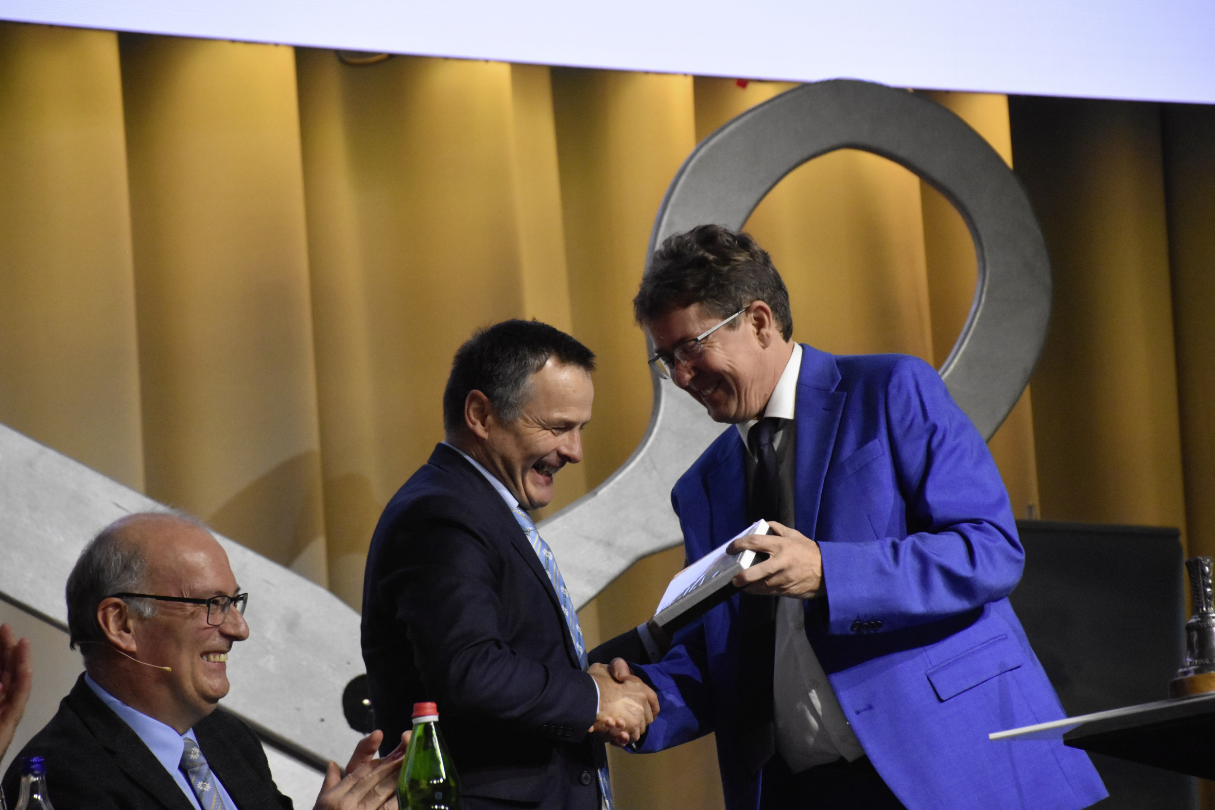Urs Schneider während der Lobrede von Markus Ritter auf ihn.