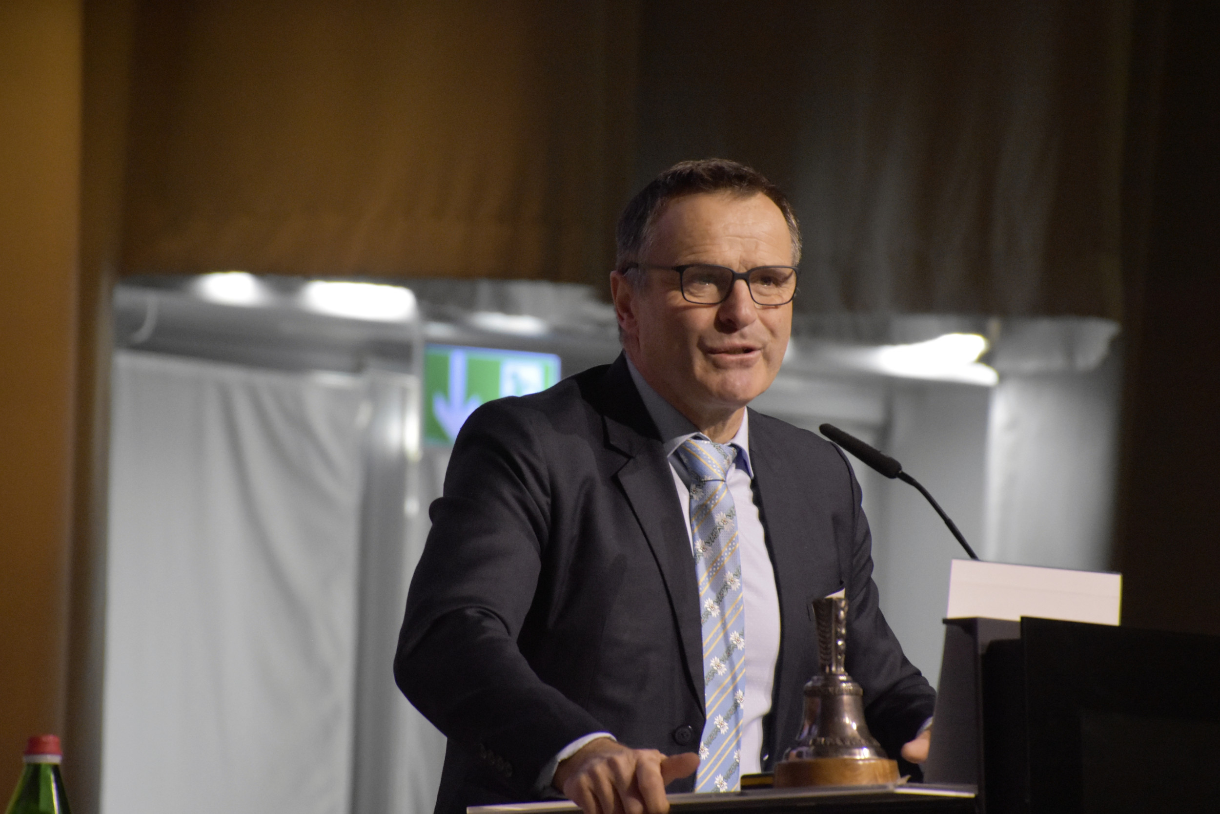 Urs Schneider während der Ansprache an die Delegierten, die er nach seiner Würdigung hielt.