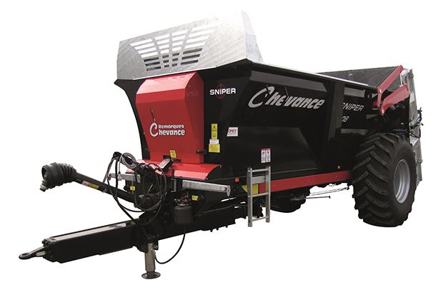 Remorques Chevance erweitert seine Mistzetter der Sniper-Baureihe mit einem 12-Kubik-Miststreuer für Berggebiete. Der französische Hersteller hat die Sniper-Serie erstmals auf Agritechnica 2015 präsentiert.