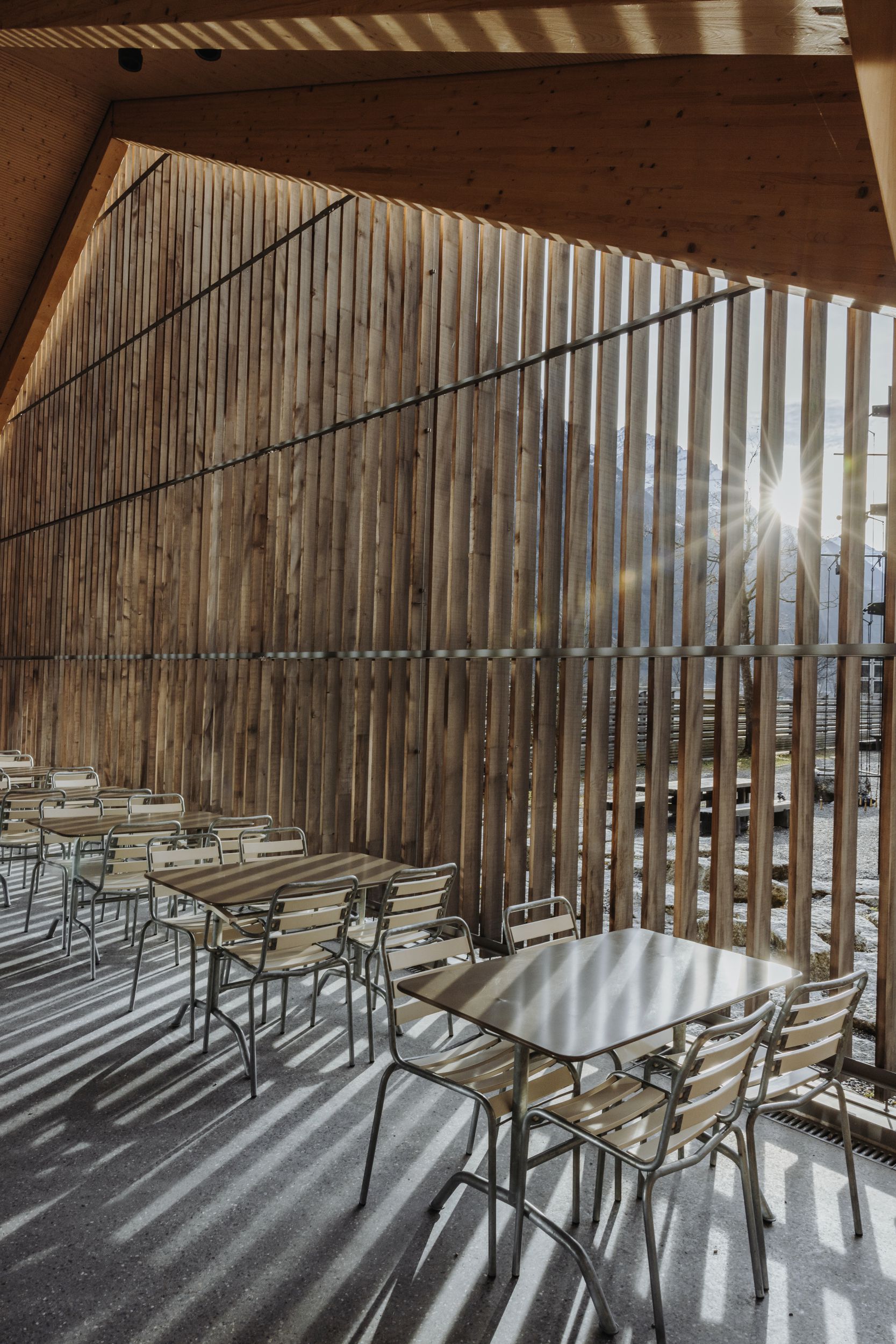 Verbaut wurde Weisstannen-Holz aus dem Napfgebiet. Aussen sei es unbehandelt, innen nur mit einem Lichtschutz, damit es nicht gelb werde. «Das Gebäude ist komplett aus Holz, Stein und Glas», erklärt Stephan Rohrer von der Gotthard Raststätte AG.
