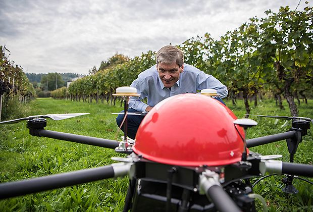 «Agrofly» soll hier Abhilfe. Das zur grossen Freude von Erik Fyrwald. Denn bei der Entwicklung der Drohne hat der Basler Konzern massgeblich mitgeholfen. Entwickelt hat die Drohne der Tüftler Frédéric Hemmeler aus Granges bei Sierre. 2015 begann er, ein Flugobjekt zu entwickeln, dass in unwegsamen und steilen Lagen Pflanzenschutzmittel zielgenau und dosiert versprühen. Ein Jahr später nahm er mit der Forschungsanstalt Agroscope Kontakt auf. Die wiederum brachte die Syngenta ins Projekt ein. Die Basler sind nach eigenen Angaben das einzige Unternehmen, das die Zielgenauigkeit von Pflanzenschutzbehandlungen wissenschaftlich testen kann.