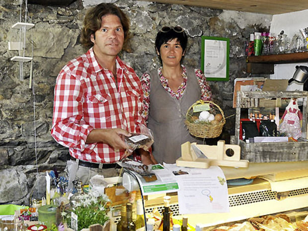 Ein Jahr darauf folgte der nächste grosse Schritt. In Ried bei Blatten konnten sie das Wohngebäude von jenem Bauern mieten, von welchem sie seit 1999 das Land gepachtet hatten. Dank der Unterstützung durch die Coop-Patenschaft für Berggebiete sowie eigenen Mitteln bauten die beiden den Kuhstall in einen Laden um. 2008 ergänzten sie das Angebot mit Fleisch von einem Galloway-Bauern, mit Käse, Wein und Teigwaren – alle Produkte stammen aus der Region.
