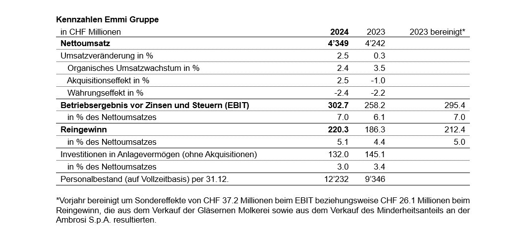 Insgesamt hat Emmi im vergangenen Geschäftsjahr 220,3 Millionen Franken (2023: 186 Mio. Fr.) verdient, das ist beinahe ein Fünftel mehr als im Vorjahr, wie die Luzerner Gruppe am Mittwoch mitteilte.