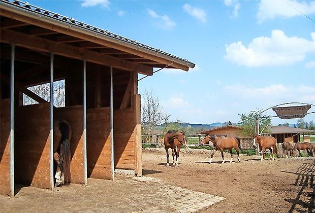 Jeder Auslauf ist schon mal besser als gar kein Auslauf. Aber tatsächlich bringt eine grosse Fläche nicht viel, wenn das Pferd trotzdem nur immer in einem Bereich steht und die Fläche nicht ausnutzt. In diesen Fällen sollte die Tränke möglichst entfernt installiert werden und/oder eine Futterstelle im selten genutzten Bereich angebracht werden. Vordächer werden von Pferden immer sehr geschätzt: Die Tiere sind dann zwar draussen, aber trotzdem vor gröbstem Regen und starker Sonne geschützt. Zudem regnet es weniger in den Stallbereich hinein.