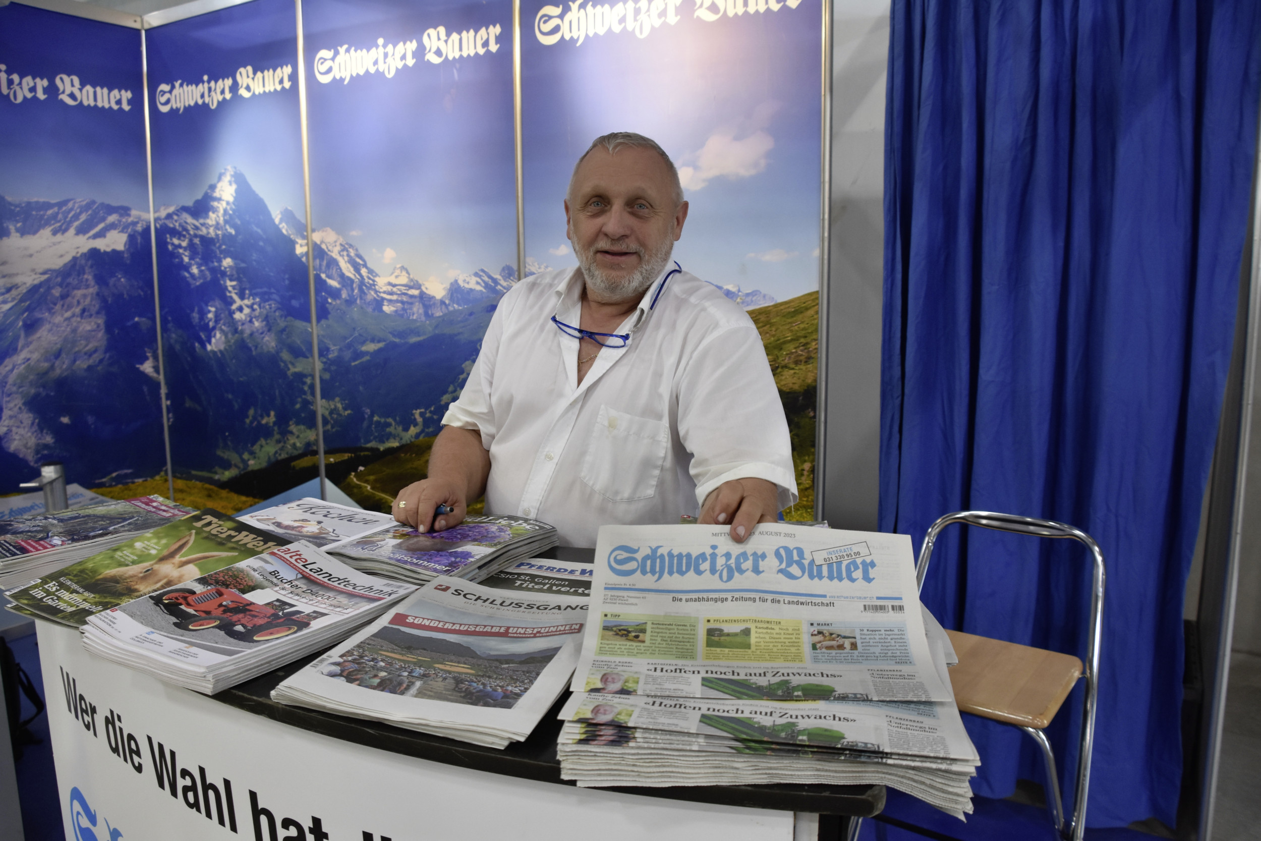 Roland Baumberger, Verkaufsberater am "Schweizer Bauer"-Stand an der Forstmesse.