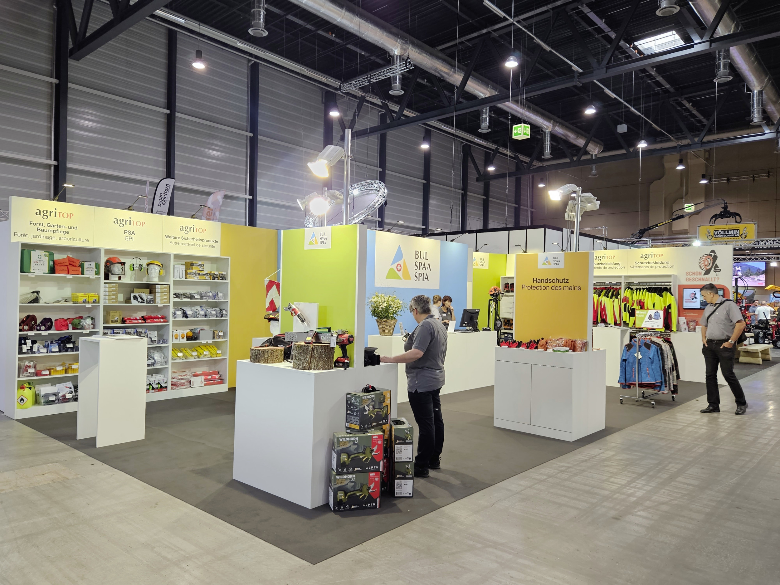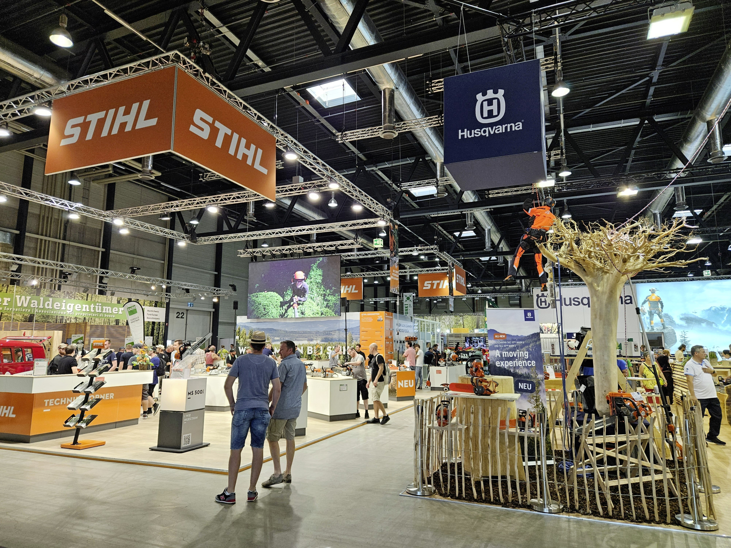 Die grossen Motorsägenhersteller Stihl und Husqvarna haben vorne in Halle 1 einen grossen Auftritt.
