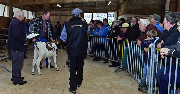 Dicht drängte sich die potenzielle Käuferschaft um den Ring, als Hansueli Bachmann und Ueli Leuenberger das erste Kalb, ein Holsteinmuneli mit 66 Kilo Gewicht, zur Versteigerung im Ring aufstellten.