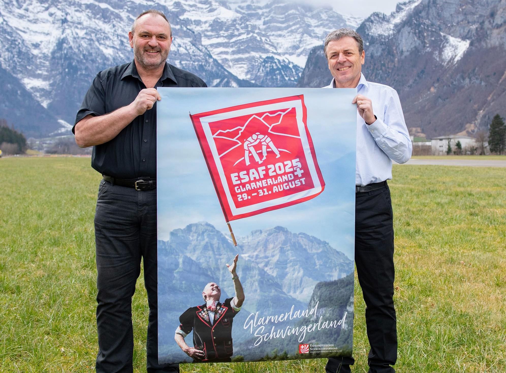 «Das Fest-Logo ist auf dem Plakat sehr gut erkennbar. Zugleich ist die gesamte Betrachtung eingebettet in unsere schöne Bergkulisse, wo die Schwing-Arena zu stehen kommt. Der Fahnenschwinger mit seiner Fröhlichkeit zeigt uns schwungvoll die Begeisterung, die wir alle spüren», sagt Hansruedi Hauser, Trägervereinspräsident und OK-Vizepräsident des ESAF 2025 Glarnerland+. Er ist überzeugt, dass das Plakat in zahlreichen Schwingkellern des Landes hängen wird. «Das Festplakat wird helfen, die Sportler zu Höchstleistungen anzuspornen», ist er sich sicher.