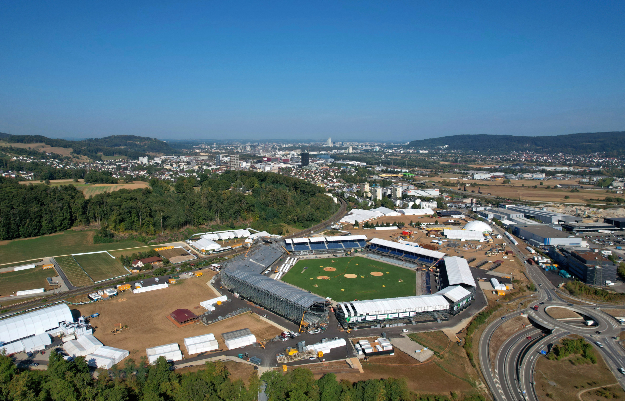 Das temporäre Stadion wie hier in Pratteln im Jahr 2022 ist riesig.