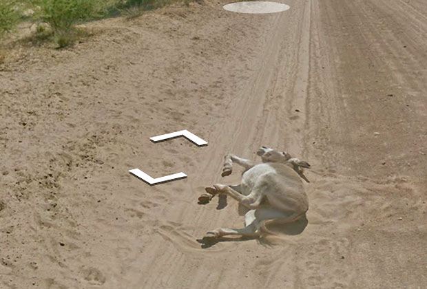 Auf dem Bild entstand der Eindruck, ein Google-Maps-Fahrzeug habe das Tier auf der unbefestigten Strasse überfahren. Der Esel habe sich lediglich im Staub gewälzt, als das Fahrzeug sich näherte, erklärte Kei Kawai von Google Maps.
